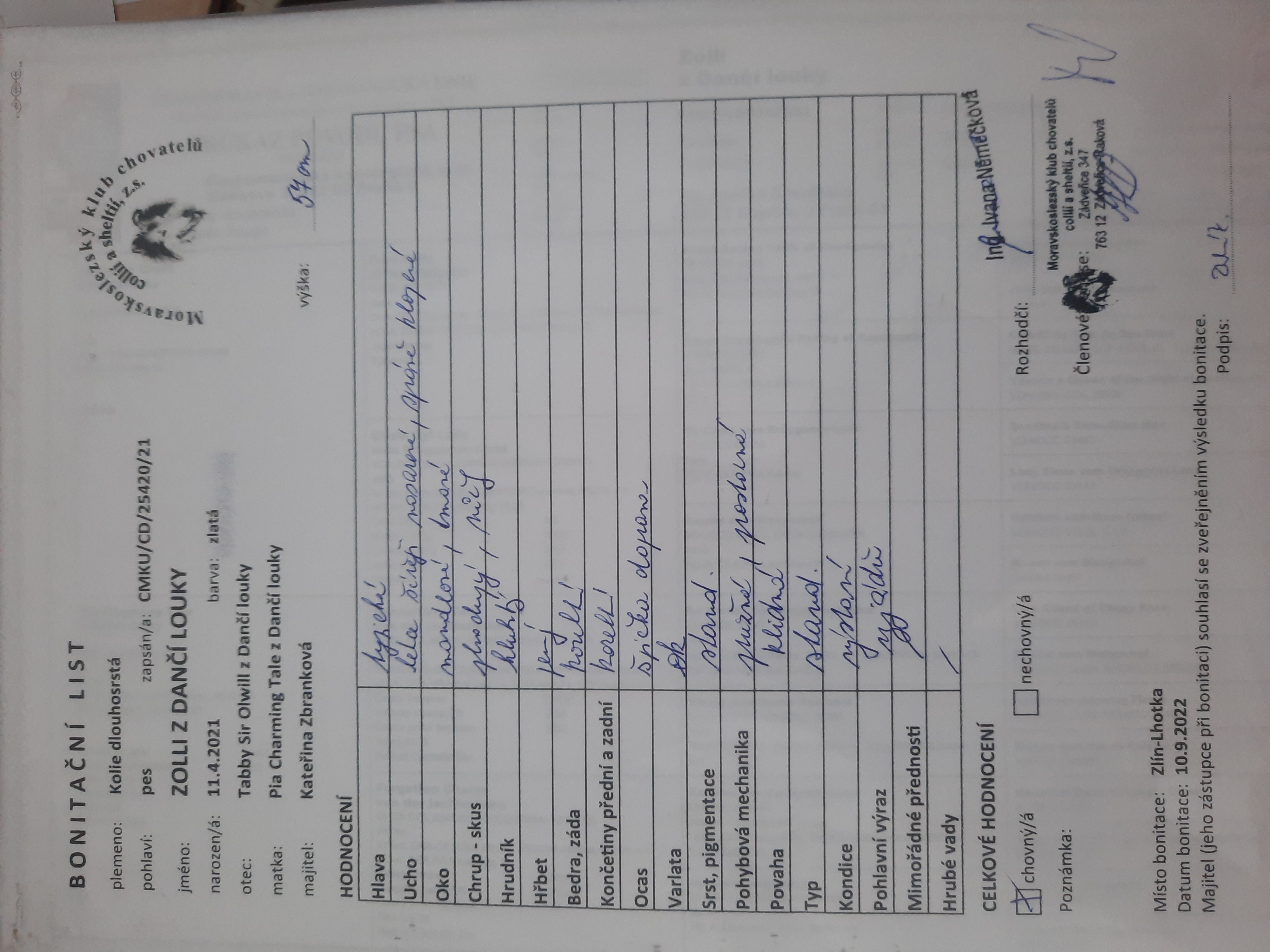 | Bonitace: | 10.9. 2022 Zlín-Lhotka | Soubory bonitačního posudku: |