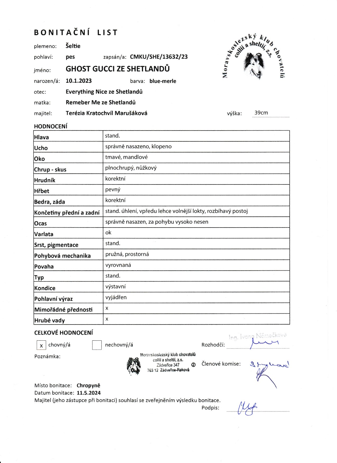 | 11.05.2024 | Chropyně | klubová (KLV) | mezitřída | Velmi dobrý | 4 | |