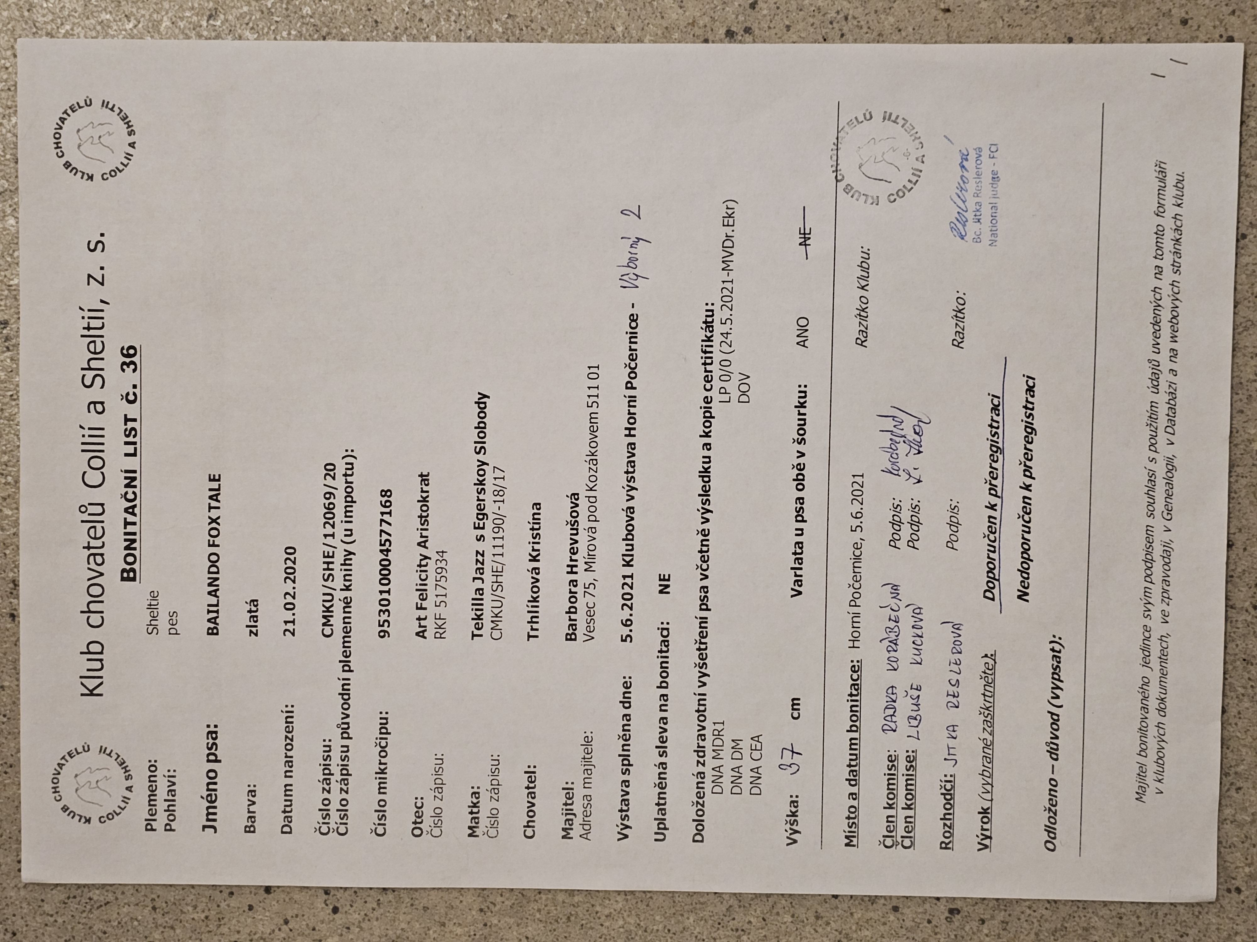| Bambi Fox Tale | fena | Šeltie | zlatá, dlouhá | ||||