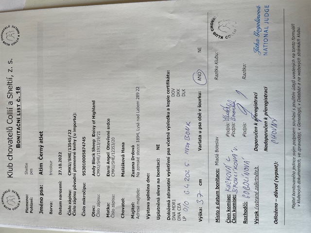 | Aivar Černý atlet | pes | Šeltie | trikolorní, dlouhá | DOV: negativní | |||